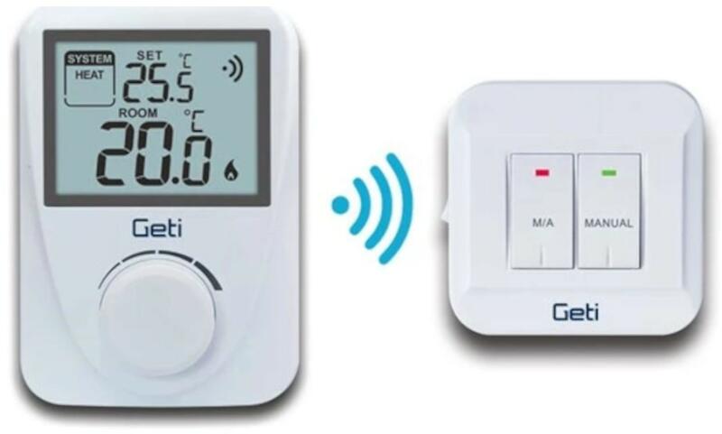 A GETI GRT02 vezeték nélküli szobatermosztát figyeli az ideális hőmérsékletet, és éjjel-nappal szabályozza a fűtési rendszert vagy a légkondicionálót. Előnye az egyszerű vezérlés és a háttérvilágítással ellátott kijelző nagy számokkal és a kívánt hőmérsékletre vonatkozó információkkal. A vezeték nélküli kialakításnak és az akár 200 m-es érzékelési tartománynak köszönhetően lehetővé teszi, hogy szükség szerint változtassa a referencia helyiséget. A termosztát fagyásgátlóval rendelkezik, ami lehetővé teszi, hogy olyan helyiségekben is használhassa, amelyeket télen nem fűt.