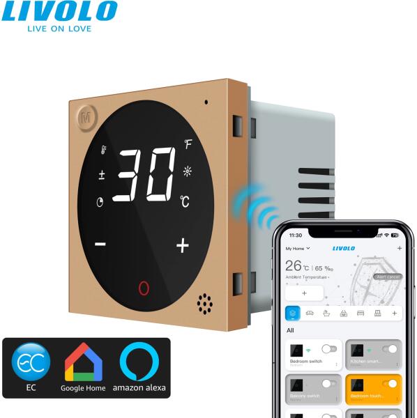 LIVOLO C7TMECG LIVOLO EC okos érintős szobatermosztát, 240V 16A, arany (C7TMECG)