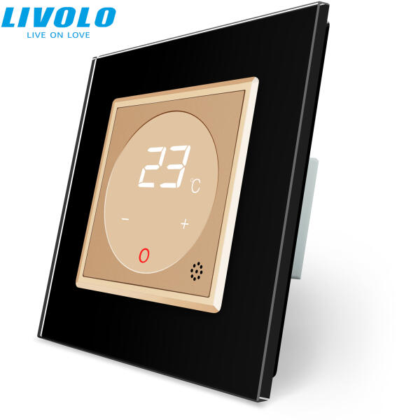 LIVOLO C7TMGB LIVOLO érintős hőmérséklet kapcsoló, termosztát, 250V 16A, arany-fekete kristályüveg (C7TMGB)