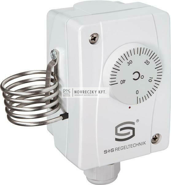S+S TR-060 ipari termosztát 0-60C, 2K hiszterézis, IP65, külső állítású (1102-1050-1100-300) Mechanikus hőmérséklet-szabályozó / nedves helyiség hőmérséklet-szabályozó THERM ASREG® TR 040 / TR 060 kapcsolókimenettel (egylépcsős), rozsdamentes acél kapillárissal (spiráltekercs-érzékelő), amely külső feszültség nélkül működik. Hőtermelő üzemek, fűtési, szellőztető és légkondicionáló rendszerek hőmérsékletének ellenőrzésére és szabályozására, csarnokokban, hűtőházakban, üvegházakban, faiskolákban, istállókban, tenyészhelyiségekben, ipari helyiségek szellőztetéséhez, hűtéséhez és klímaberendezéséhez használják termosztát vagy felületi kontakt termosztát ipari alkalmazásokhoz, valamint nedves helyiségekben és kültéri területeken. apcsolási kapacitás (érintkezési terhelés)24… 250 V AC +10%, 16 A, cos ϕ = 1,0